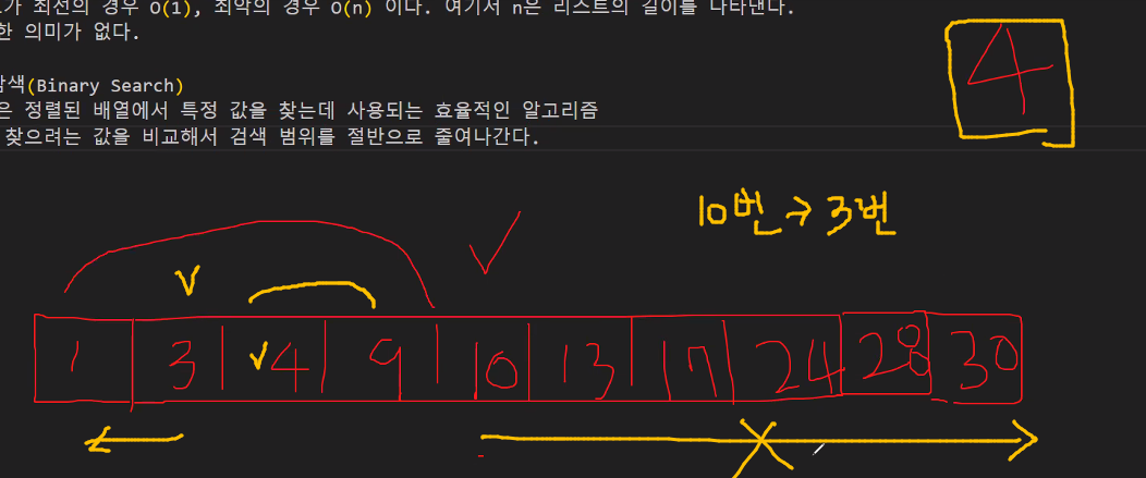 이진 탐색은 정렬된 배열에서 특정 값을 찾는데 사용되는 효율적인 알고리즘