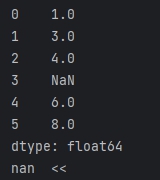 s = pd.Series([1, 3, 4, np.nan, 6, 8])