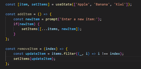const [item, setItems] = useState(['Apple', 'Banana', 'Kiwi']);